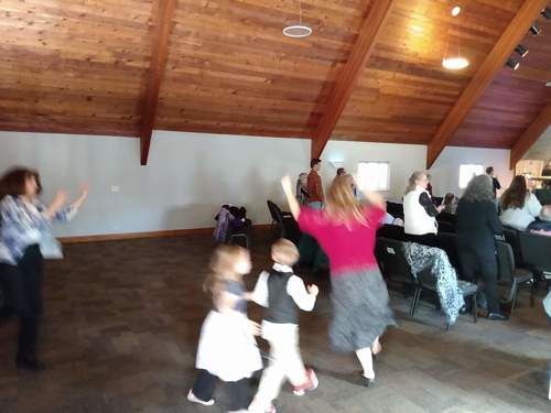 We then stand for the traditional Hebrew blessing (the congregation echoes) and read the Parashat haShavuah - a Bible reading program thousands of years in the making (about 5-8 minutes). We close with another Hebrew blessing. The children (ages 4-11) are dismissed to their classes, we share a few announcements and say hello to our neighbors.